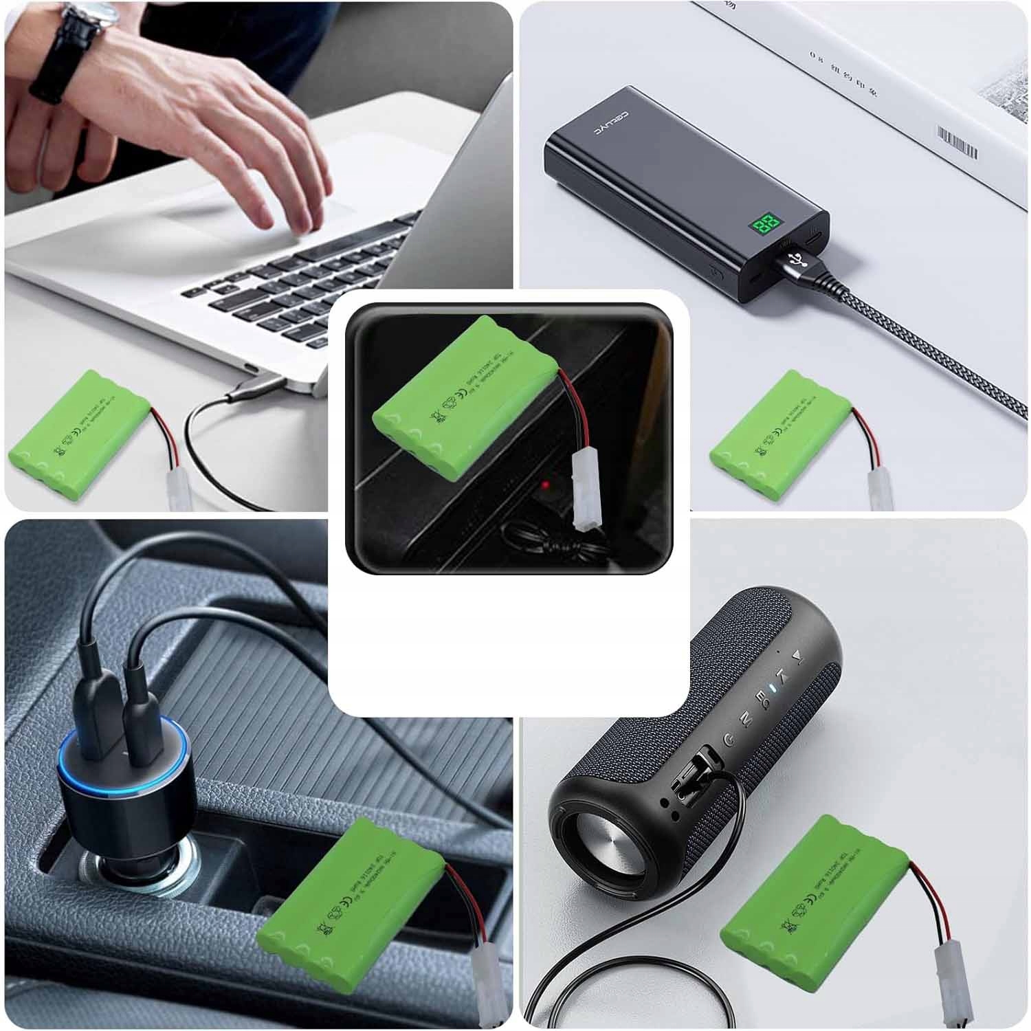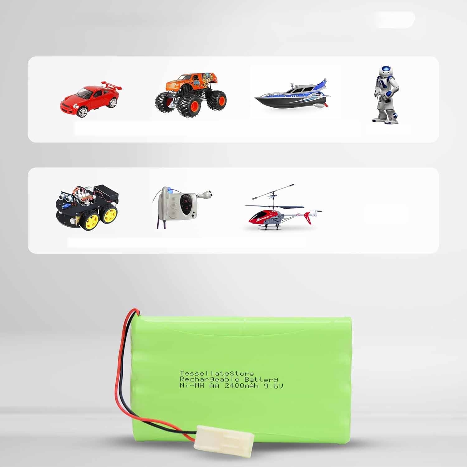 🔋Акумулятор 9,6 В nimh працюватиме з більшістю пристроїв для хобі, таких як RC монстр-траки, потяги Olar Express, Ricochet RC. вантажівки, RC Beetle, RC Hummers, автомобілі Traxx Tyco, RC автомобілі Radio Shack, танки 1/20