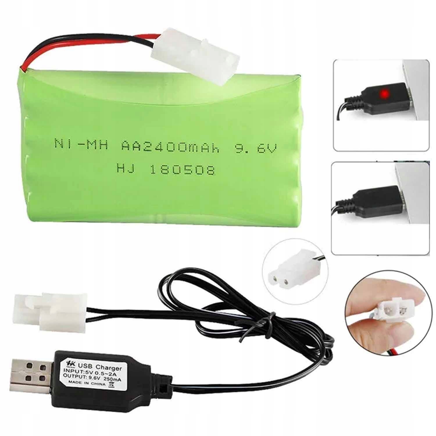 Акумулятор акумулятора 9,6 В 2400 мАг Ni-MH Tamiya Plug з кабелем зарядки USB