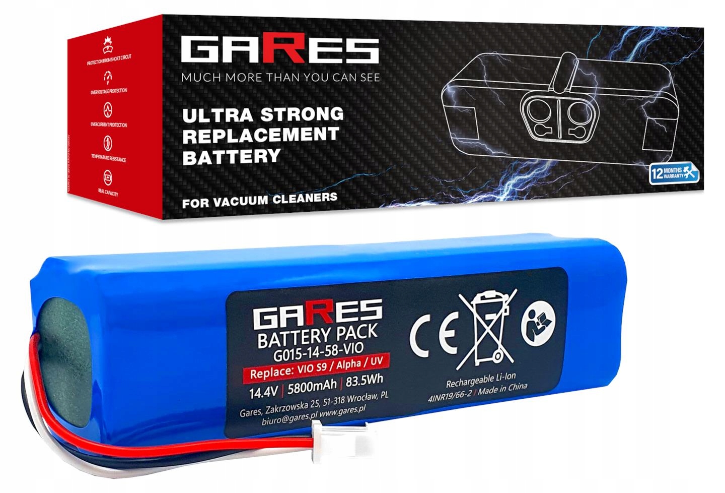 Брендований акумулятор 14,4 В/14,8 В 5,8AH (5800 мАг) для проззеного вакууму - вибирайте ефективні та надійні батареї Gares®!