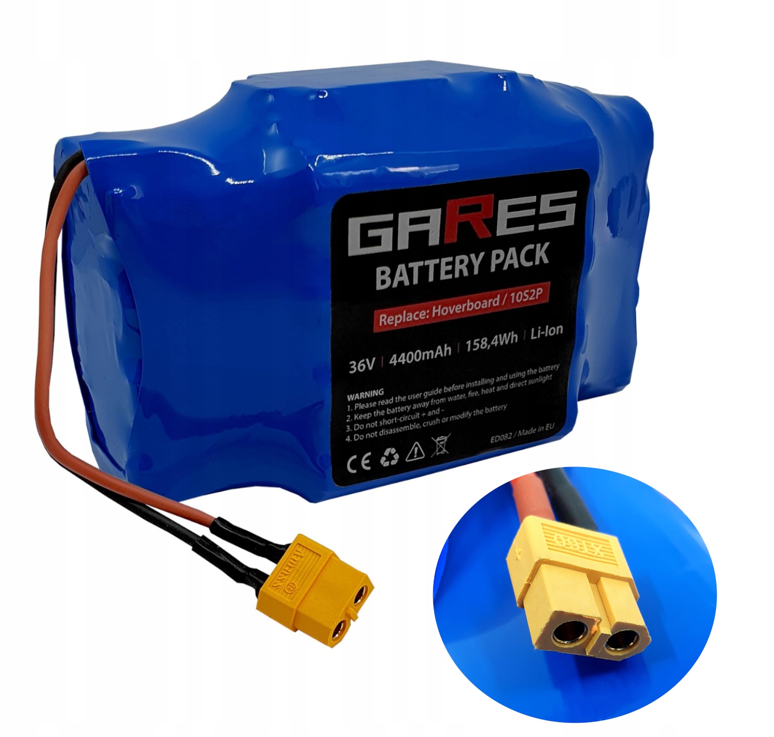 Універсальний штекер XT60U-F, який використовується в акумуляторі для підключення акумулятора, гарантує ідеальну сумісність із більшістю доступних на ринку ховербордів та їх зарядними пристроями.