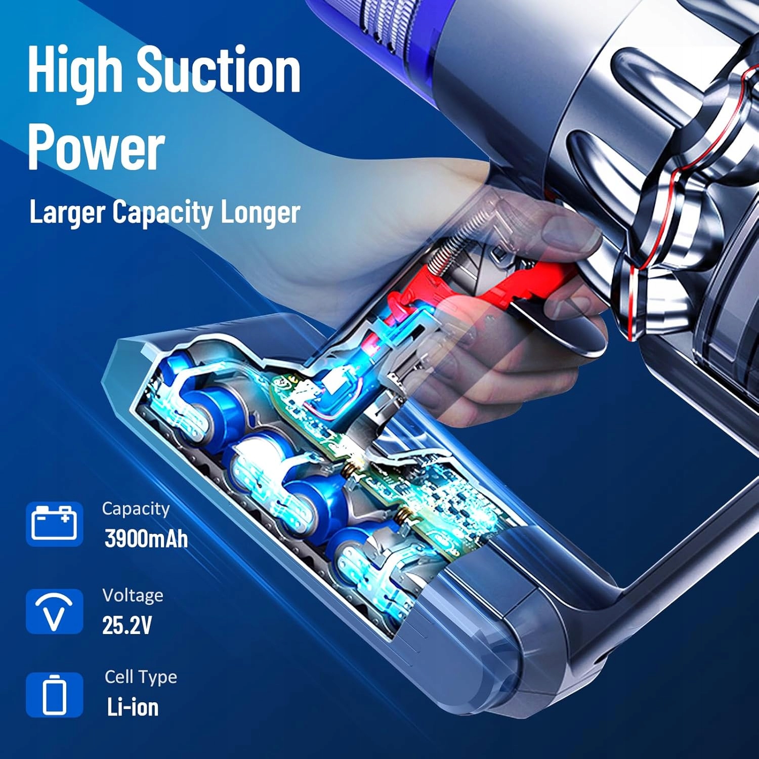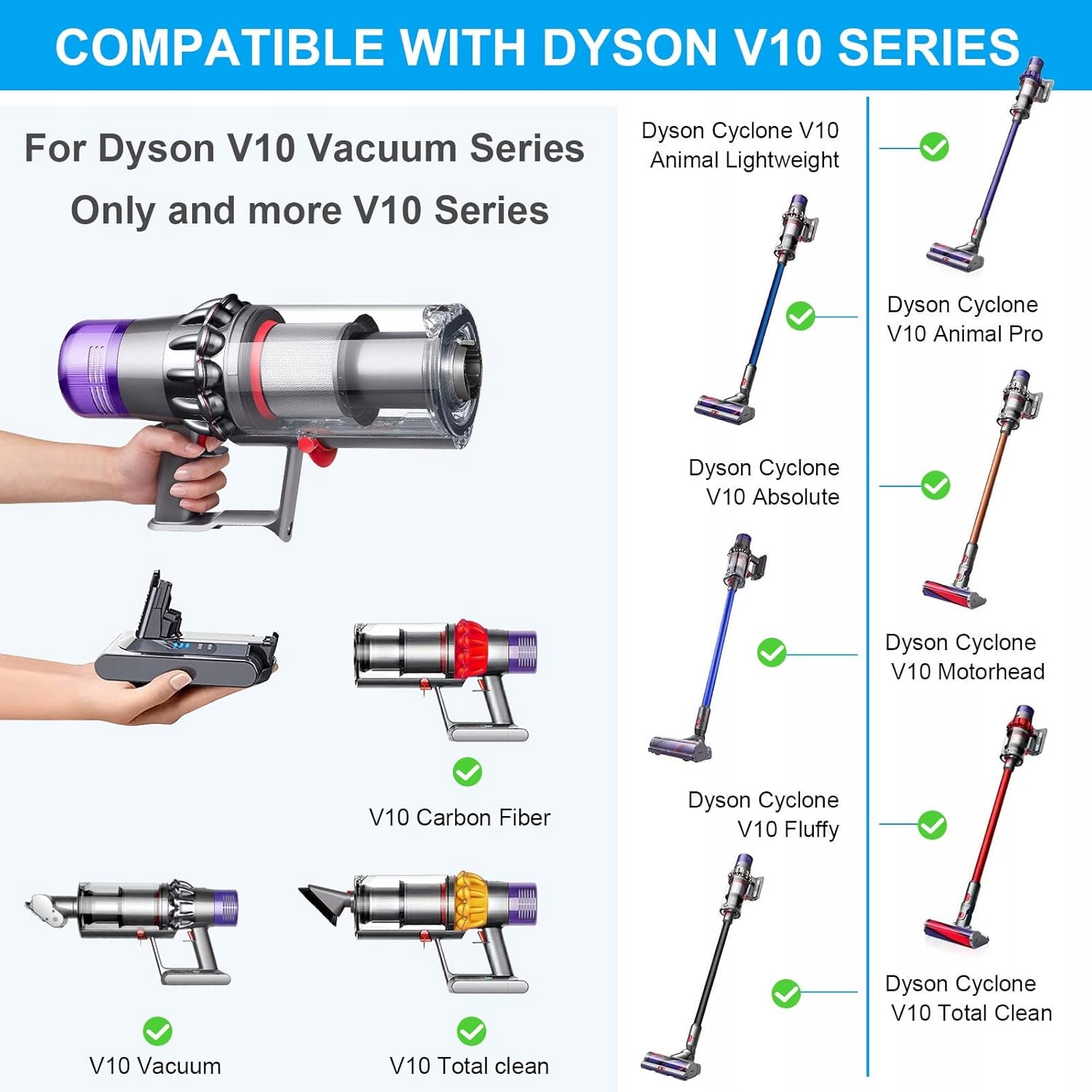 - Велика -25,2 V 3900 мАг акумулятор для бездротового вакууму Dyson V10, з семи розіграненим алюмінієвим акумулятором. індикатор】 3 світлодіод V10 світлодіоди V10 для позначення рівня живлення; Індикатор фільтра вказує на те, що фільтр повинен бути очищений; індикатор блокування.
