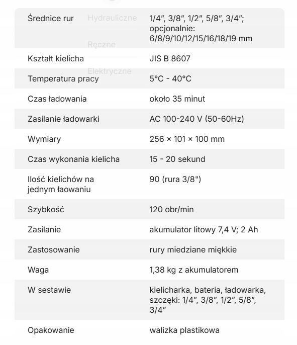 - Захвати: 1/4", 3/8", 1/2", 5/8", 3/4"