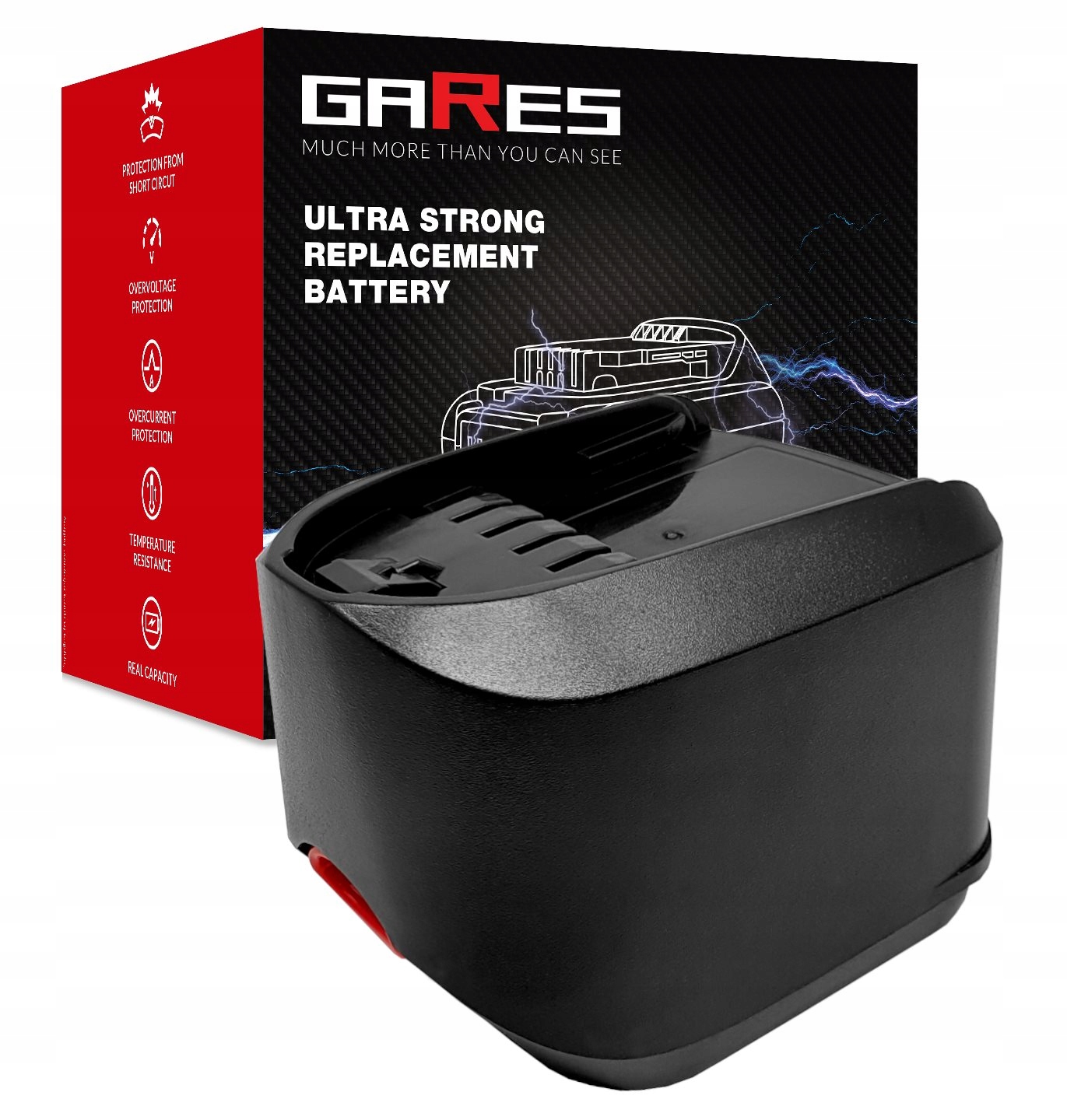 Сильнострумові елементи, які використовуються в акумуляторах GARES®, гарантують найвищу якість пропонованих акумуляторів, забезпечуючи безвідмовну роботу та тривалий термін служби. 100% усунення ефекту пам'яті є ключовим фактором при професійному використанні акумуляторів у компанії або як хобі вдома. Унікальні технології роблять його дуже легким, але він зберігає, порівняно з гідридними елементами, вдвічі більше енергії в елементах. Це робить його дуже міцним і забезпечує тривалий час роботи на одному заряді. Купуючи цю батарею, ви можете бути впевнені, що її ємність реальна і не завищена, на що ми даємо 100% гарантію.