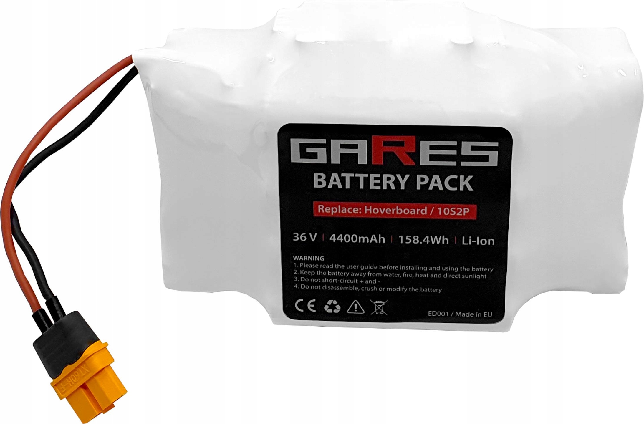 Універсальний штекер XT60U-F, який використовується в акумуляторі для підключення акумулятора, гарантує ідеальну сумісність із більшістю доступних на ринку ховербордів та їх зарядними пристроями.