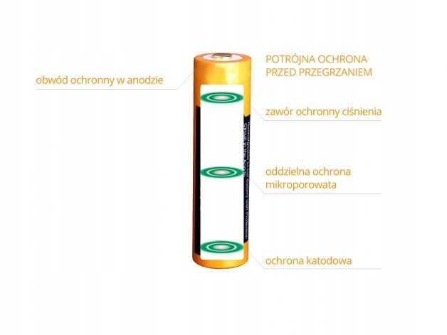 Додаткові засоби захисту, як-от захист від перегріву, надмірного заряджання та надмірного розряду акумулятора, гарантують безпечне використання акумулятора.