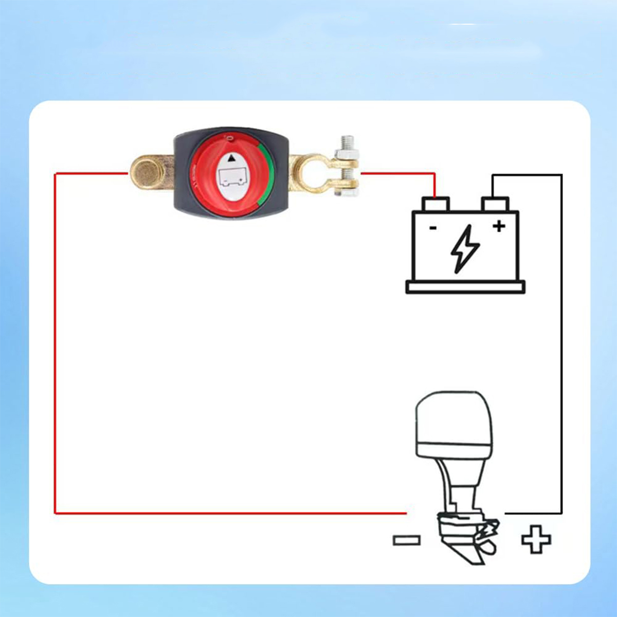 Головний вимикач акумулятора 12 В має водонепроникний дизайн, який ефективно запобігає проникненню вологи. Головний вимикач батареї особливо підходить для використання на морі, у дощові дні чи в інших вологих середовищах, забезпечуючи більшу надійність.