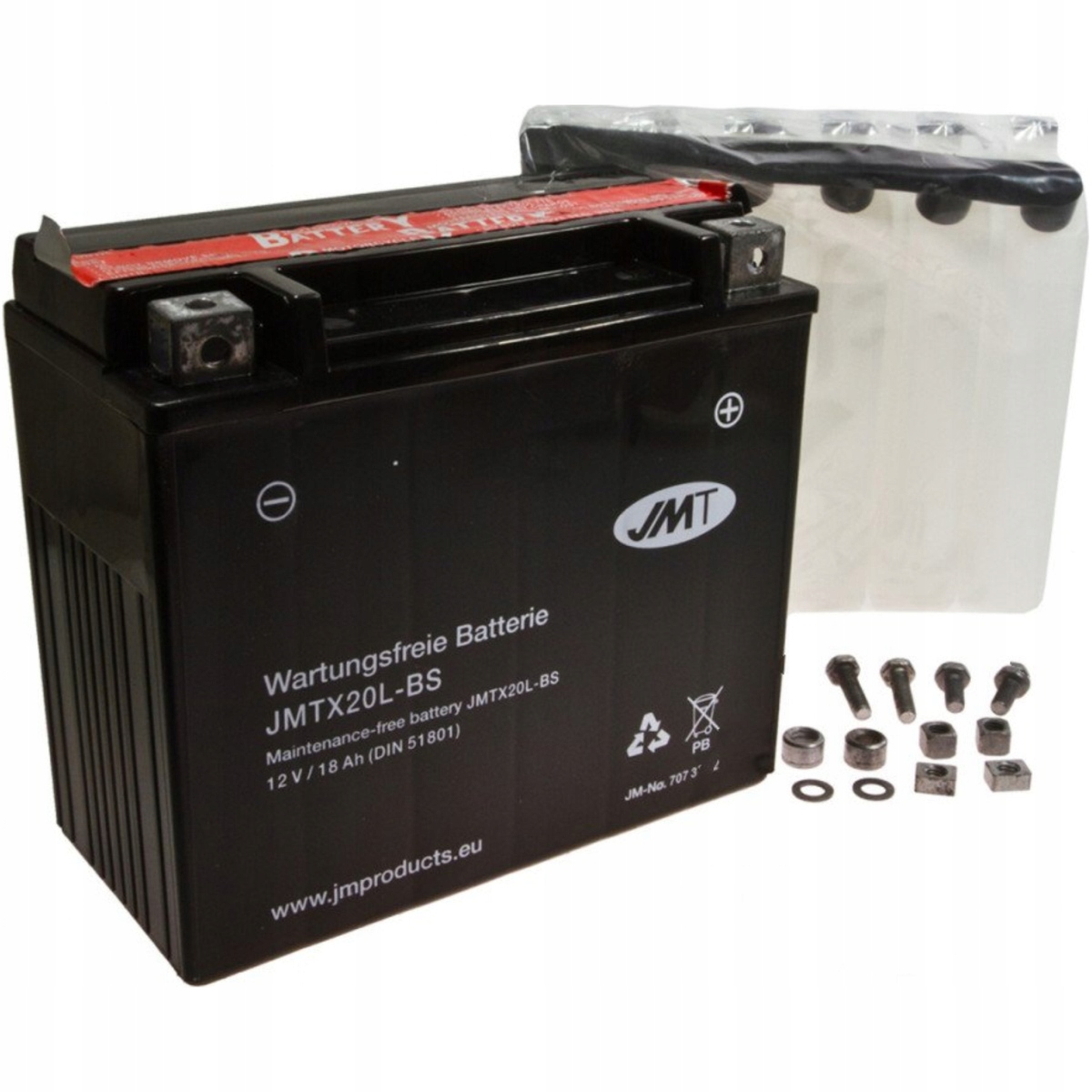 Акумулятор, що постачається з електролітним бака. Він не був активований, і після затоплення його електролітом слід додати відповідно до показань, описаних нижче. За останні кілька років акумулятори JMT повністю змінили обличчя. Завдяки використанню повністю автоматизованої виробничої лінії, в даний час виробляються акумулятори JMT, представляють найвищий глобальний технологічний рівень. Відносно низька ціна означає, що акумулятори JMT є найкращим рішенням на ринку мотоциклістів. Рівень заряду можна перевірити альтернативно за допомогою метра напруги. Якщо це 6,1 В (6 В акумулятор) або 12,2 В (12 В акумулятор), акумулятор повинен бути наповнений рівним або менше 1/10 ємності акумулятора. Приклад: акумулятор 8AH повинен бути заряджений значенням 0,8 a.