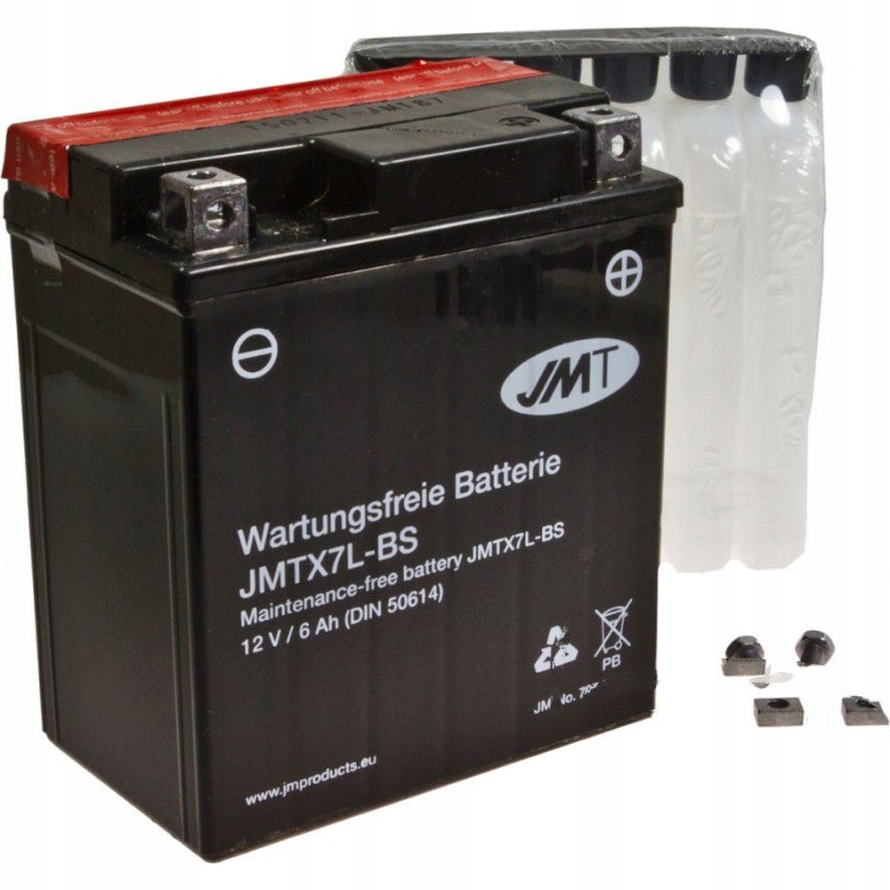 Акумулятор, що постачається з електролітним бака. Він не був активований, і після затоплення його електролітом слід додати відповідно до показань, описаних нижче. За останні кілька років акумулятори JMT повністю змінили обличчя. Завдяки використанню повністю автоматизованої виробничої лінії, в даний час виробляються акумулятори JMT, представляють найвищий глобальний технологічний рівень. Відносно низька ціна означає, що акумулятори JMT є найкращим рішенням на ринку мотоциклістів. Рівень заряду можна перевірити альтернативно за допомогою метра напруги. Якщо це 6,1 В (6 В акумулятор) або 12,2 В (12 В акумулятор), акумулятор повинен бути наповнений рівним або менше 1/10 ємності акумулятора. Приклад: акумулятор 8AH повинен бути заряджений значенням 0,8 a.