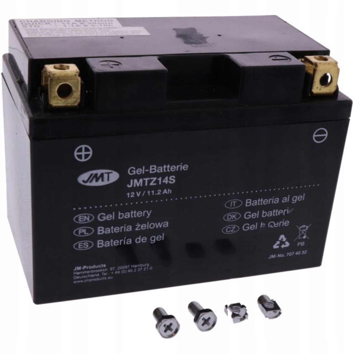 Акумулятор, що постачається з електролітним бака. Він не був активований, і після затоплення його електролітом слід додати відповідно до показань, описаних нижче. За останні кілька років акумулятори JMT повністю змінили обличчя. Завдяки використанню повністю автоматизованої виробничої лінії, в даний час виробляються акумулятори JMT, представляють найвищий глобальний технологічний рівень. Відносно низька ціна означає, що акумулятори JMT є найкращим рішенням на ринку мотоциклістів. Рівень заряду можна перевірити альтернативно за допомогою метра напруги. Якщо це 6,1 В (6 В акумулятор) або 12,2 В (12 В акумулятор), акумулятор повинен бути наповнений рівним або менше 1/10 ємності акумулятора. Приклад: акумулятор 8AH повинен бути заряджений значенням 0,8 a.