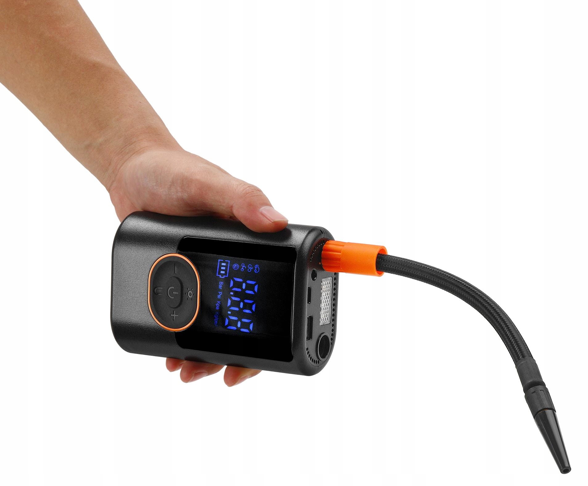 - Автоматичні режими надування, які регулюють тиск відповідно до типу об’єкта, який накачується. - Ідеально підходить для накачування шин автомобілів, мотоциклів, велосипедів і м'ячів.