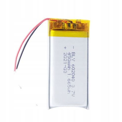 Акумулятор Li-Po Li-Poly 450mAh 3.7V PCM 40x20x6mm Характеристики акумулятора Літій-полімерний акумулятор ємністю 450mAh Акумулятор використовується в мобільних пристроях, таких як планшети, навігації, ноутбуки. Часто використовується як хобі в проектах DIY або IoT. Має вбудовану систему захисту PCM (захист від перезаряду, перерозряду та короткого замикання).