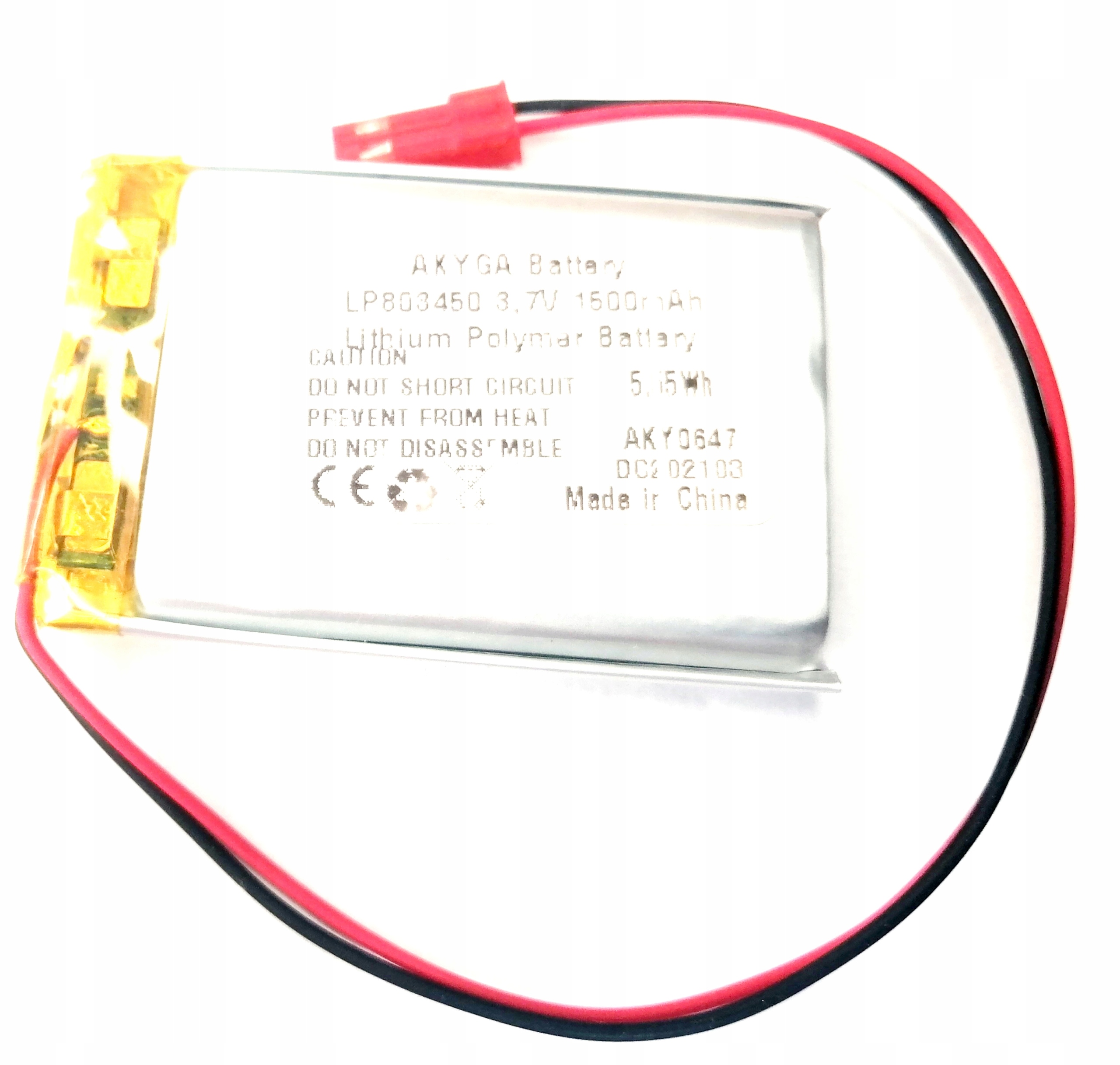 Літій-полімерний акумулятор із системою захисту та роз’ємом - Високий ККД по струму - Відсутність ефекту пам'яті - Хороше співвідношення місткості до розмірів і ваги камери - Велика гнучкість у проектуванні форм і розмірів. - Високоякісні системи захисту, які контролюють процеси зарядки та розрядки Легко збирається завдяки клемникам у вигляді проводів і спеціальному роз'єму Без електролітів, вуглецевих матеріалів. Екологічно чисті акумулятори Повільна швидкість спонтанного розряду клітин додаток, серед інших в портативних пристроях: цифрових камерах і відеокамерах, КПК, мобільні телефони, мультимедійні плеєри. Використовується як джерело енергії в моделюванні, наприклад, дистанційно керованих літаків і гелікоптерів. Дуже популярний в логістиці, системах GPS і медицині Корпус 8,0X34X50 мм