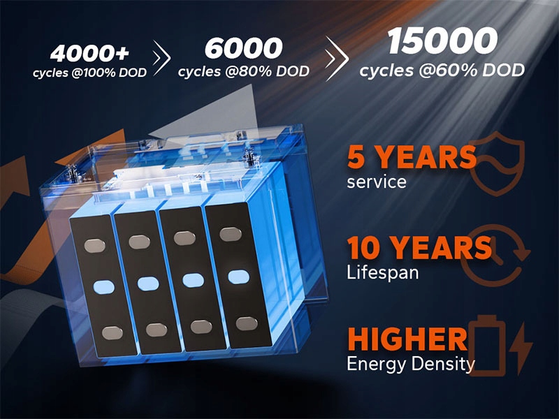 Літієва батарея LiTime 24 В 50 Ач, що живиться від вдосконалених елементів LiFePO4, забезпечує понад 4000 глибоких циклів при 100% DOD і забезпечує до 10 років надійного використання без обслуговування. Завдяки вищій енергоефективності, нульовим викидам токсичних речовин і довшому терміну служби, ніж свинцево-кислотні батареї, це екологічне рішення, яке заощаджує ваші гроші в довгостроковій перспективі.