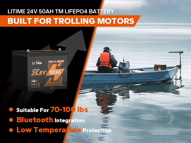 Спеціально розроблений для двигунів з тягою 70-100 фунтів LiTime 24V 50Ah LiFePO4 акумулятор забезпечує плавну та надійну роботу на воді. Завдяки водонепроникності IP65 і безперервному розряду 60 А (30 хвилин) він створений для рибалок, яким потрібна енергія протягом усього дня, без затримок і хвилювань.