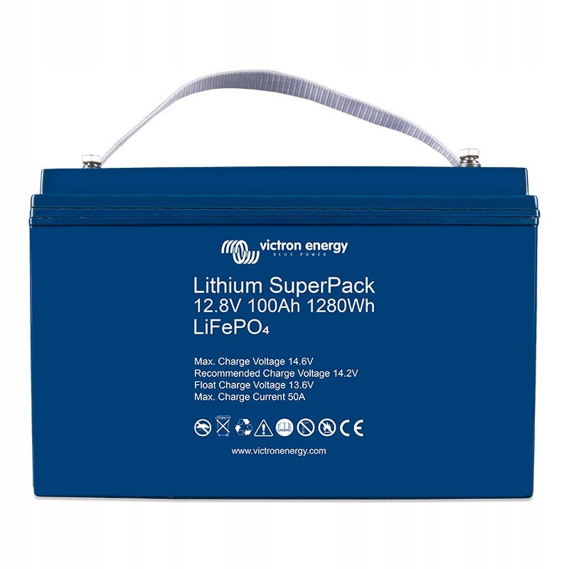Літієві батареї SuperPack є типовою конструкцією LiFePO4 батарей, тобто літій-залізо-фосфатних батарей із вбудованою системою керування BMS. Він характеризується надзвичайною довговічністю та кількістю 50% робочих циклів, що досягають 5000.