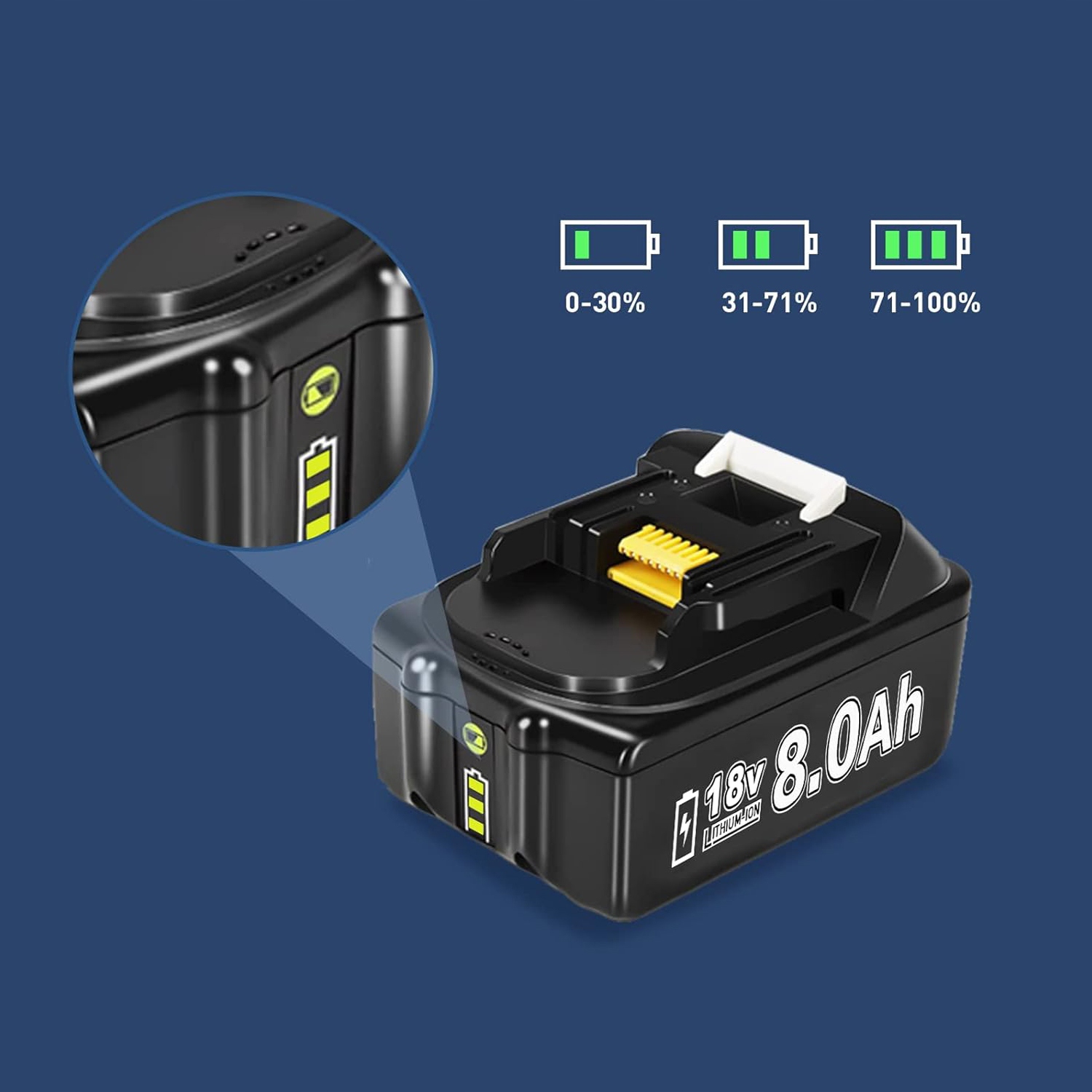 ⚡ Змінна батарея Makita 18 В 8,0 А·год із 3 світлодіодними індикаторами, які постійно показують використання батареї та не мають ефекту пам’яті, ідеально підходять для сумісності з акумуляторними інструментами Makita.