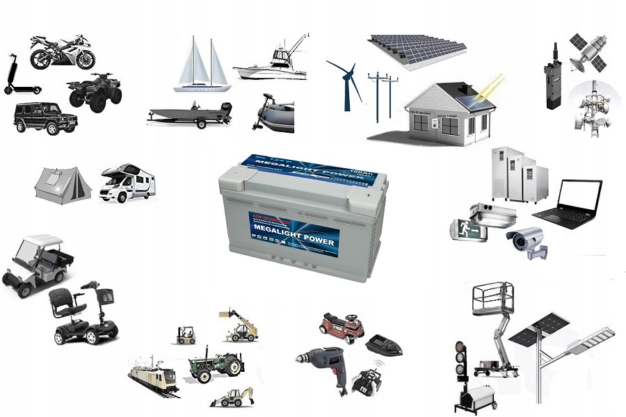 Акумулятори MEGALIGHT POWER з абсорбуючим скломатом AGM (Absorbent Glass Material) виготовлені за передовою технологією і призначені для пристроїв, в яких батарея глибоко розряджена.