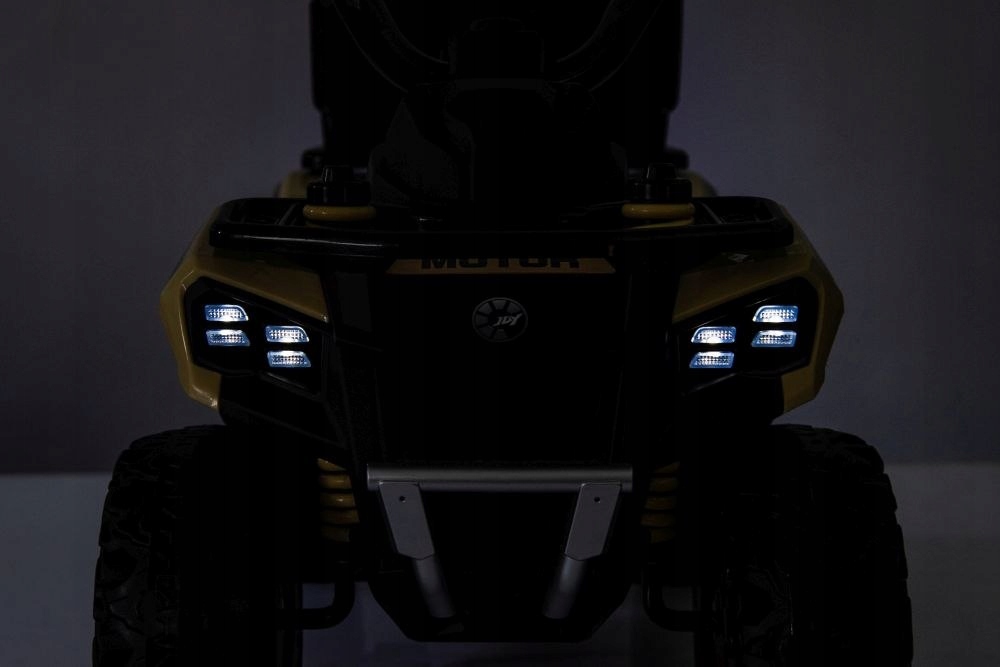 Колір хакі квадроцикла привертає увагу та робить автомобіль надзвичайно привабливим для дітей. Світлодіодні передні ліхтарі додають сучасного вигляду, покращуючи видимість в умовах слабкого освітлення. Функція пара як імітація вихлопних газів і блакитне підсвічування додатково приваблюють. Вбудована музична панель забезпечує розвагу під час кожної поїздки - ваша дитина зможе слухати свої улюблені мелодії, що зробить розвагу ще більш захоплюючою.