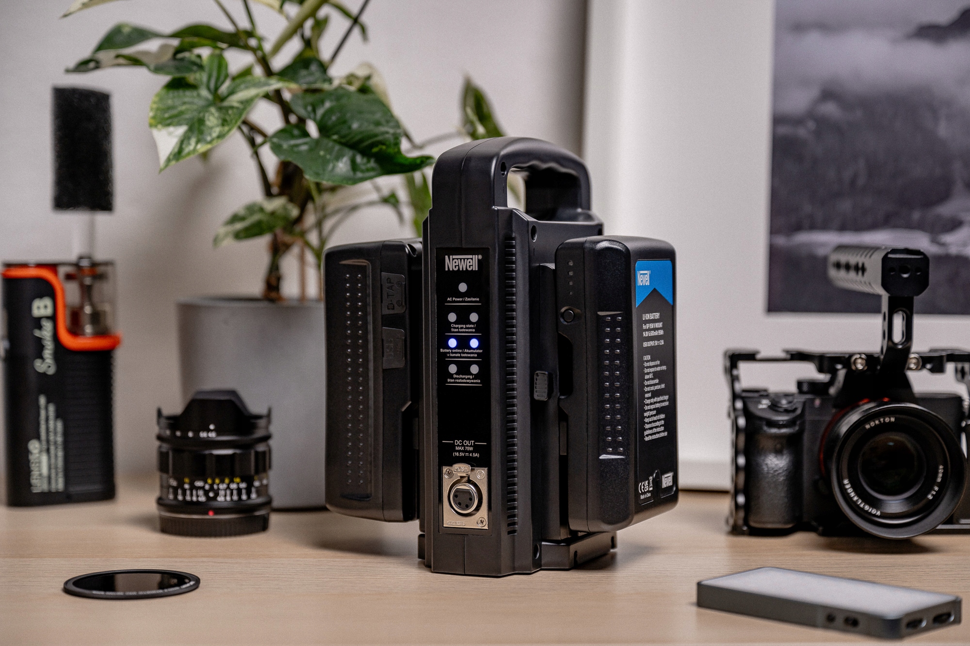 - сумісний із зарядними пристроями та електростанціями для батарей V-Mount (включно з Newell BP-4CH або Newell BP-4CHT)