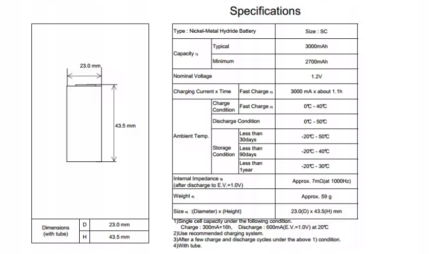 АКУМУЛЯТОР OCNIWO <span>class SC 1.2V 3000mAh NI- <span>class MH</span></span>