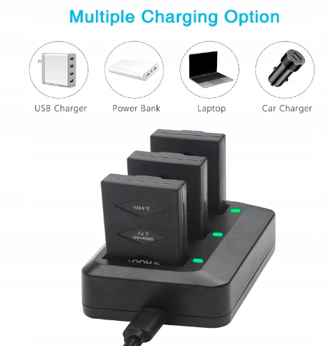 - Зарядний пристрійіз системою захисту ланцюга в кожному зарядному слоті. Дозволяє заряджати 1, 2 або 3 батареї одночасно, заощаджуючи багато часу на зарядку.