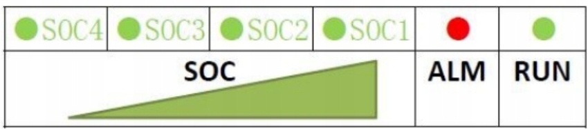 Лицька панель обладнана шістьма світлодіодами, які візуалізують поточний заряд акумулятора