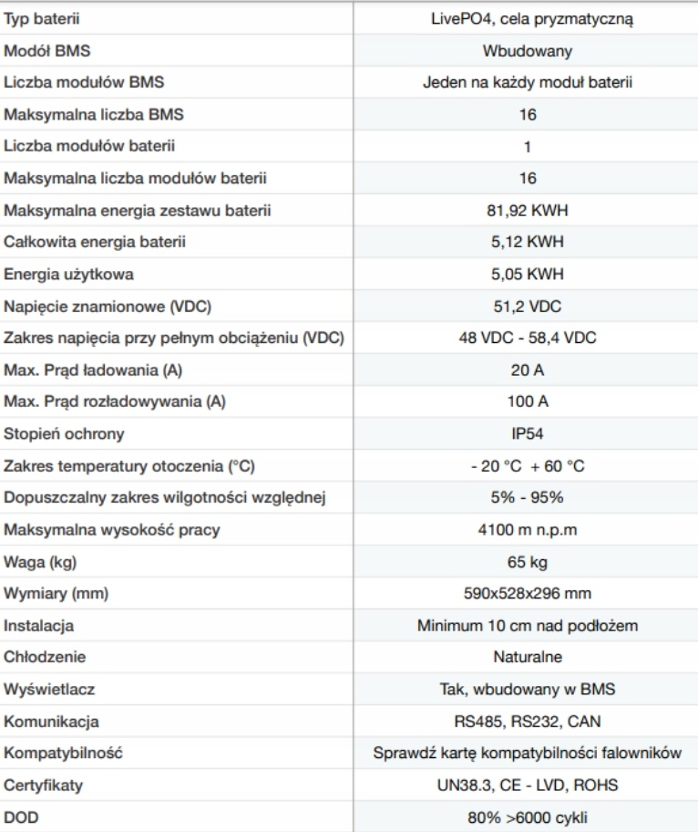 - показує напругу 51,2 В постійного струму та ємністю 5,12 кВт·год,
