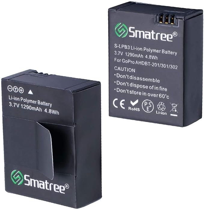 - Завдяки технологічно вдосконаленим японським елементам літій-полімерна батарея ємністю 1290 мАг забезпечує безпечніший і довший термін служби батареї. Вони повністю сумісні з GoPro HERO3+ і HERO3.