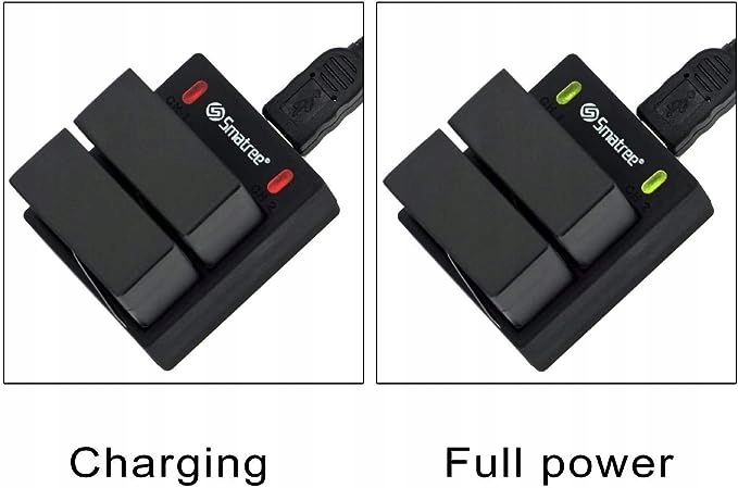 - Мініатюрний USB-зарядний пристрій дозволяє повністю зарядити 1 або 2 батареї одночасно за кілька годин.