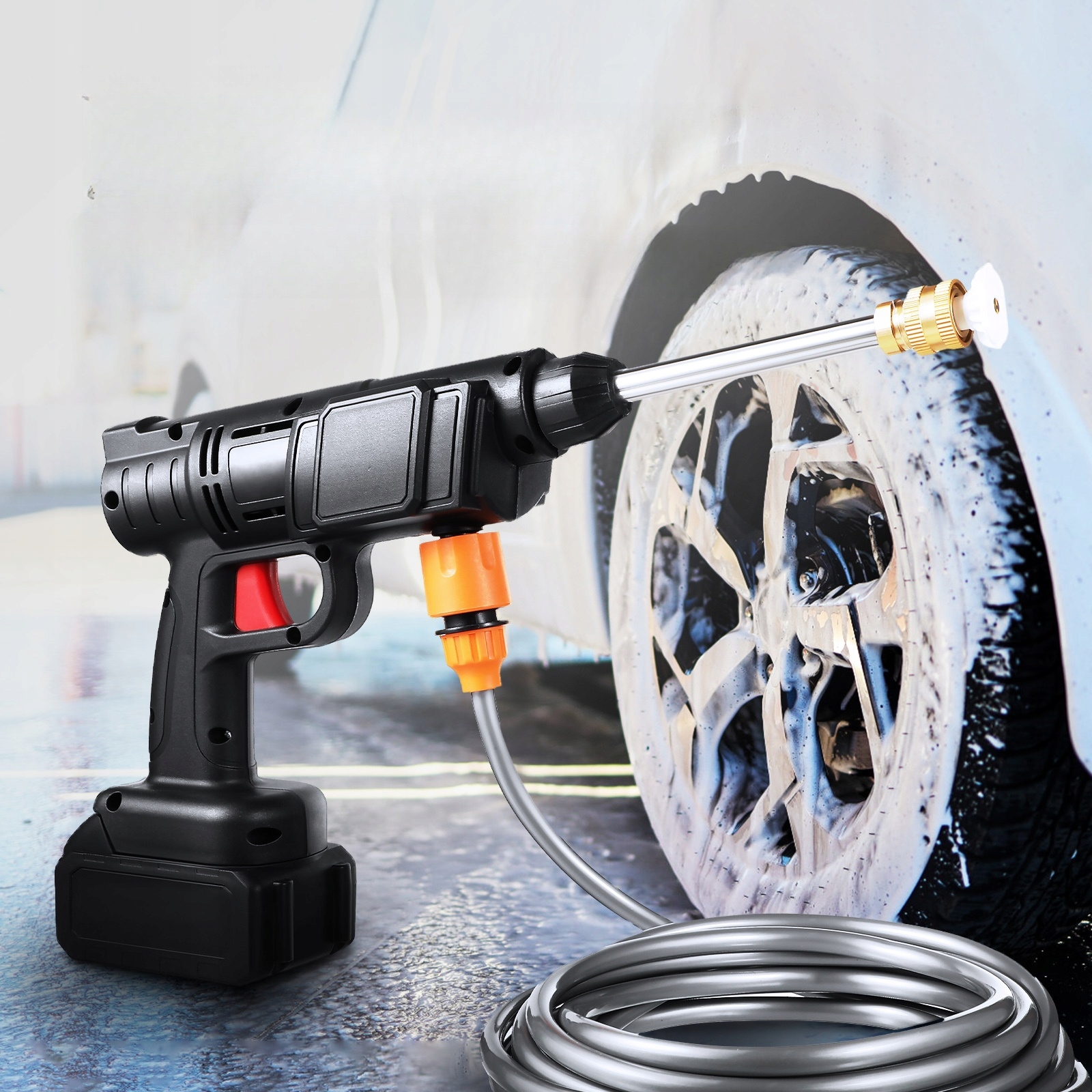 ✅Бездротова та портативна: ця бездротова мийка високого тиску дозволяє використовувати її будь-де, не використовуючи розетку, вона легка та простий у використанні.