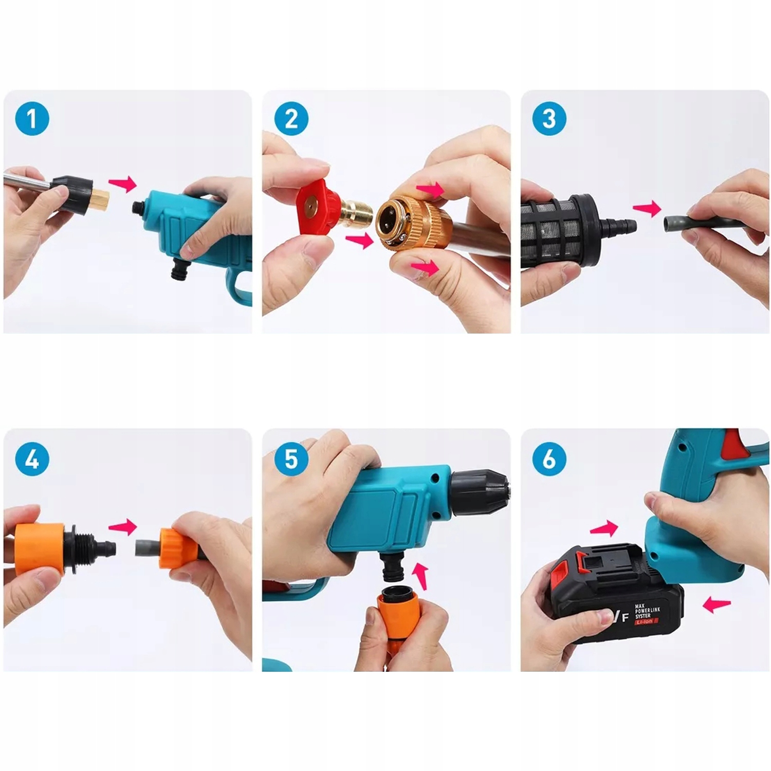 - Миючий водяний пістолет з різними аксесуарами та високою потужністю можна використовувати не лише для миття автомобіля, але й для поливу вдома та саду, миття стін, підлоги, ванних кімнат , басейни, двері, куточки.