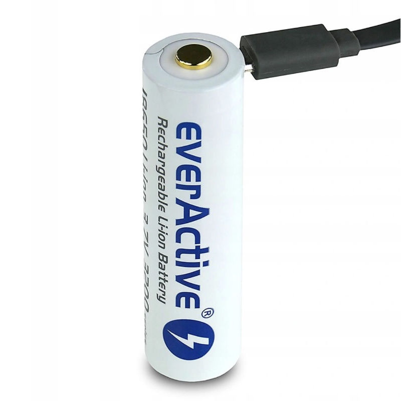 Його можна заряджати безпосередньо від будь-якого порту USB на комп’ютері або за допомогою будь-якого зарядного пристрою USB із параметрами 5 В постійного струму та ефективністю струму мін. 500 мА. Максимальний час зарядки за допомогою зарядного пристрою на 500 мА становить приблизно 6,5 години. Більш потужні зарядні пристрої відповідно скоротять цей час. Акумулятор everActive 18650 також можна заряджати за допомогою більшості зарядних пристроїв, призначених для літій-іонних акумуляторів.