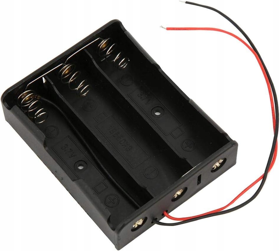Кошик із кабелями для трьох батарей 18650. Корзина для батарейок має форму невеликої відкритої коробки з окремим місцем для батарейок. Кошик вміщує 3 елементи 18650 без захисту та із захистом - BMS.