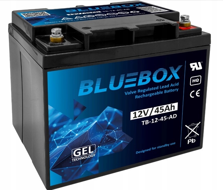 Модель Bluebox TB-12-45-AD — це гелевий акумулятор для установок, де важливе тривале та стабільне живлення.