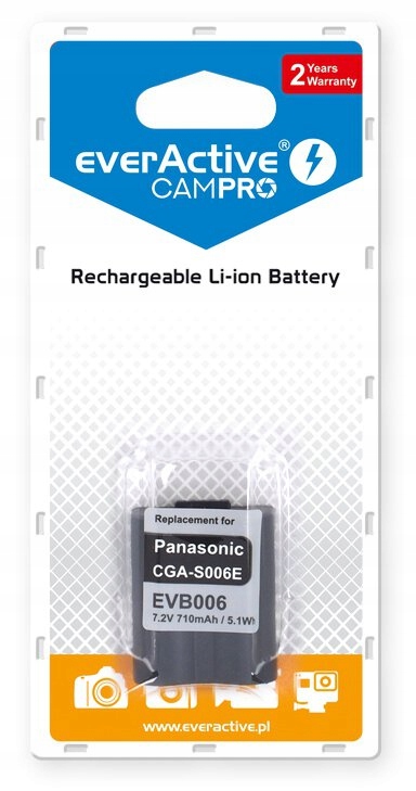 ХАРАКТЕРИСТИКИ ПРОДУКТУ Літій-іонний фотоакумулятор EverActive CamPro Panasonic CGA-S006 710 мАг