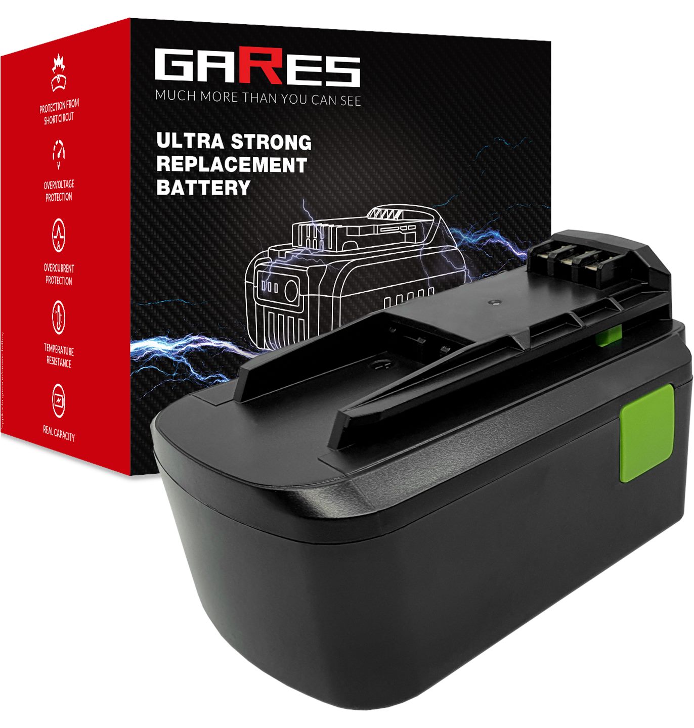 Сильнострумові елементи, які використовуються в акумуляторах GARES®, гарантують найвищу якість пропонованих акумуляторів, забезпечуючи безвідмовну роботу та тривалий термін служби. 100% усунення ефекту пам'яті є ключовим фактором при професійному використанні акумуляторів у компанії або як хобі вдома. Унікальні технології роблять його дуже легким, але він зберігає, порівняно з гідридними елементами, вдвічі більше енергії в елементах. Це робить його дуже міцним і забезпечує тривалий час роботи на одному заряді. Купуючи цю батарею, ви можете бути впевнені, що її ємність реальна і не завищена, на що ми даємо 100% гарантію.