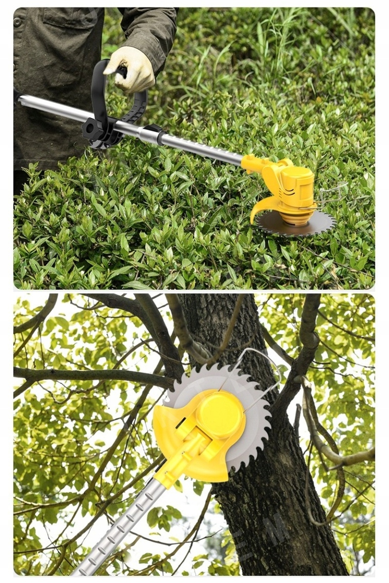 Електричний акумуляторний тример із 3 типами лез, акумуляторний тример для підстригання м’яких бур’янів і обрізання країв, лезо matel може видаляти бур’яни та живоплоти, металеве пиляльне полотно може обрізати кущі та товсті стовбури дерев, акумуляторний бур’ян Тример підходить для газону, саду, різних сценаріїв.