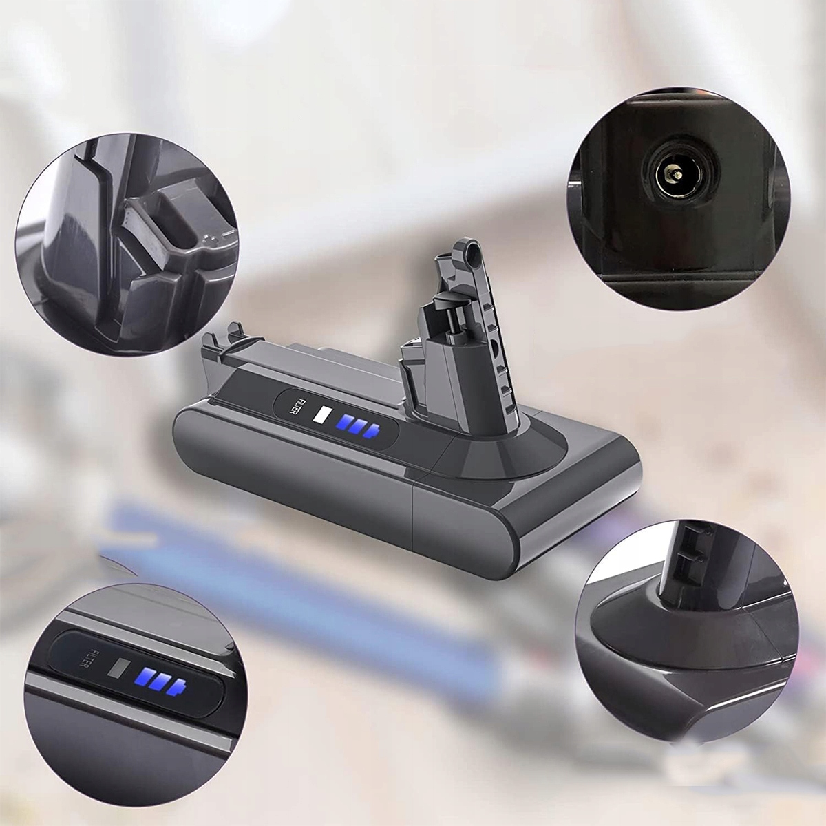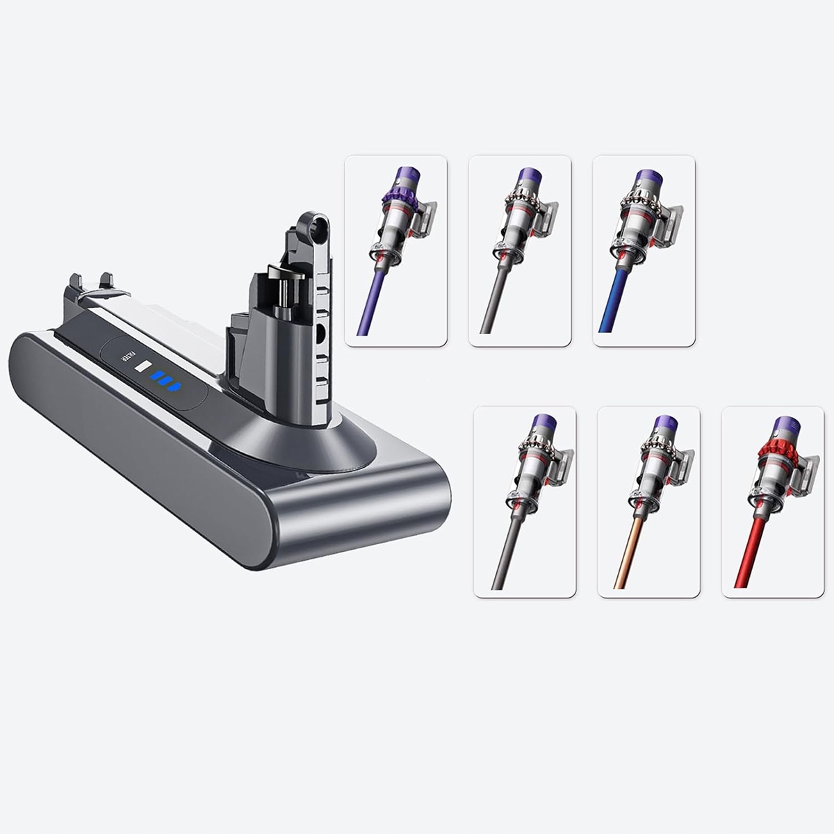 Сумісність із пилососами Dyson Cyclone V10 Animal, V10 Absolute, V10 Motorhead, V10 Fluffy, акумулятором OEM V10 і зарядним пристроєм Dyson V10. (ПРИМІТКА: Лише для V10, НЕ для V6, V7, V8, V11). Це не оригінальний продукт, а економічна альтернатива оригіналу з відмінною якістю та виконанням.