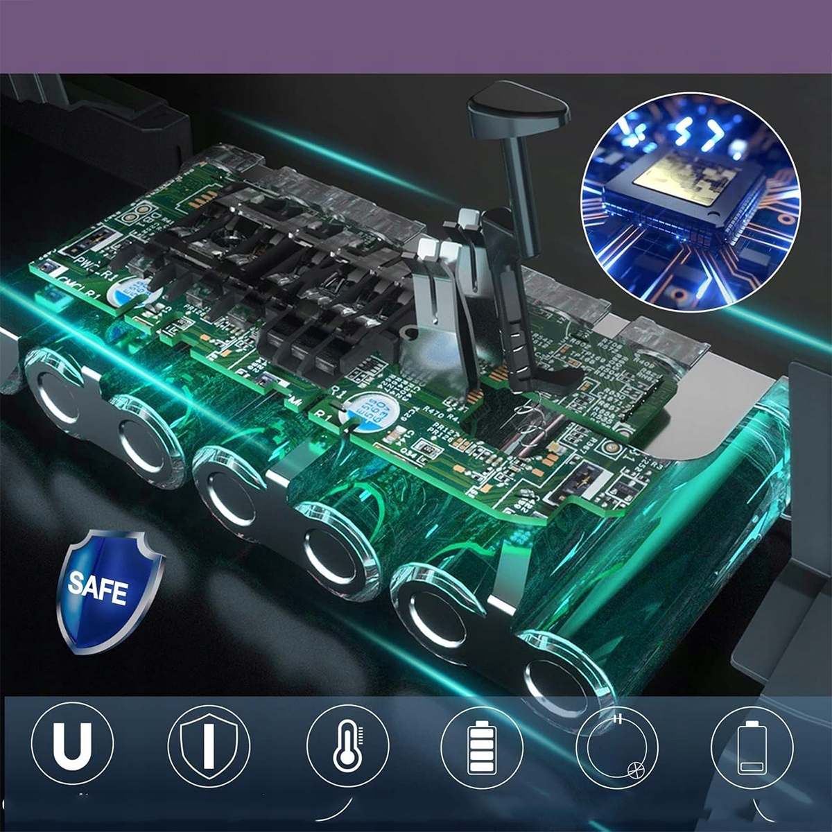 - Виготовлений із високоякісного сердечника та елементів батареї, що забезпечує швидке заряджання, низьке енергоспоживання та довший термін служби. Крім того, вбудована мікросхема інтелектуального захисту пропонує кілька систем захисту, зокрема захист від короткого замикання, перегріву, перезаряду та перенапруги.