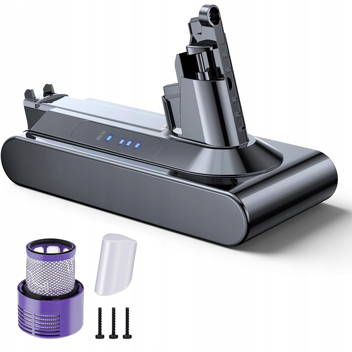 Акумулятор V10 6000 мАг, змінний акумулятор для бездротового пилососа Dyson V10 Animal Absolute Motörhead Fluffy Total Clean SV12, з 1 фільтром і 3 гвинтами