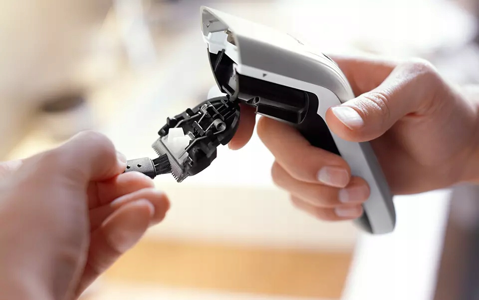 Просто відкрийте головку та використовуйте щітку для чищення, яка входить у комплект, щоб вимести залишки волосся.