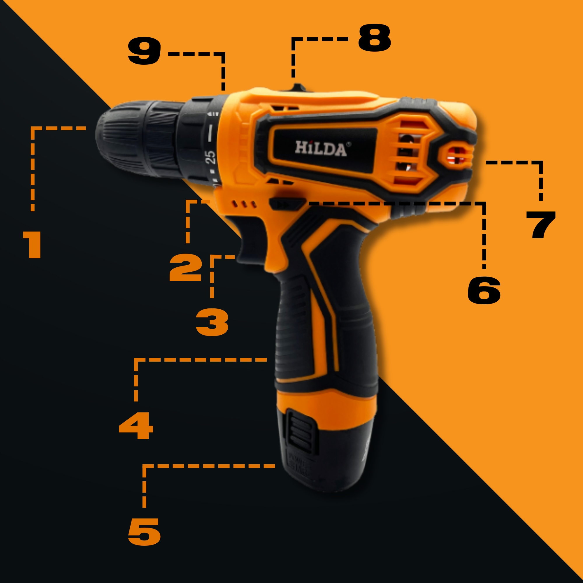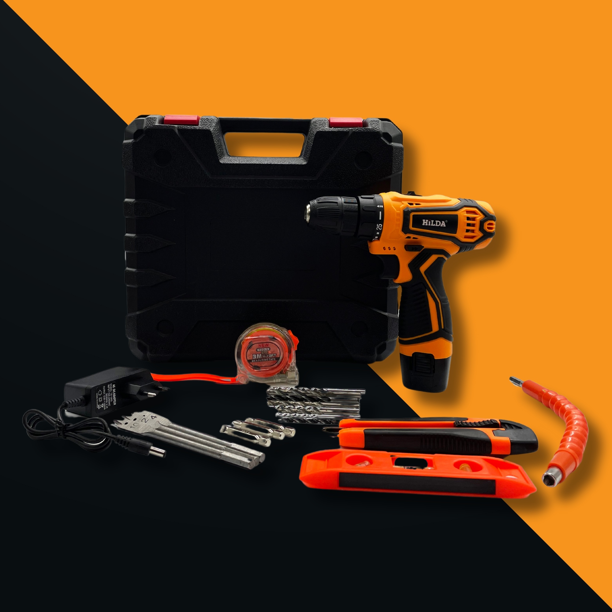 АКУМУЛЯТОРНА ДРиль, ШУРУПОВЕРТ, НАБІР БІТ, СВЕРДЛА 12V LED LI-LON HILDA