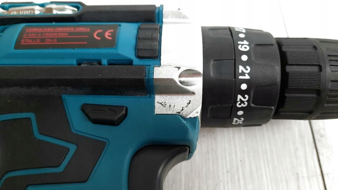 2-швидкісна акумуляторна дриль є додатковою (0–450 об/хв, 0–1500 об/хв); оригінальний двигун може встановити точний крутний момент (макс. 45 Нм); світлодіоди дозволяють працювати в темряві; Вбудований балансир може визначити правильний напрямок свердління.