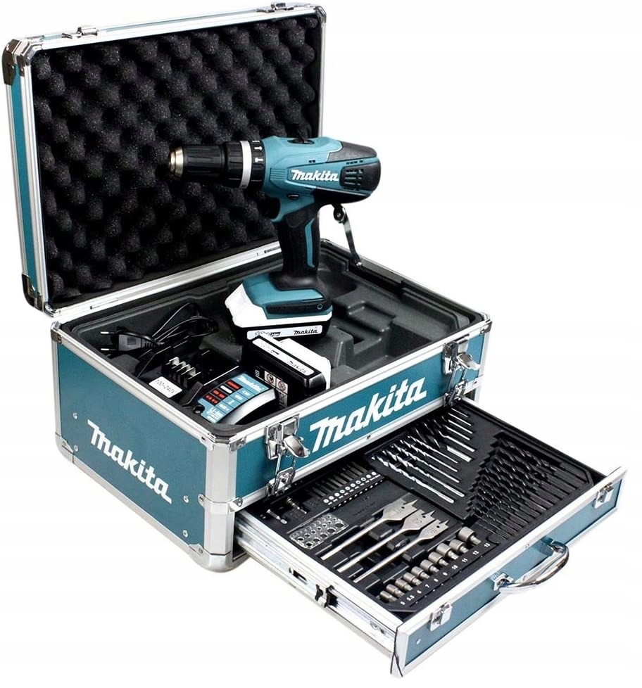 МАКІТА АКУМУЛЯТОРНА УДАРНА ДРЕЛЬ/ПРИВОД 18 В 42 Нм + 2 БАТАРЕЇ 1,5 А·год + ЗАРЯДНИЙ ПРИСТРІЙ + АЛЮМІНІЄВИЙ КОРПУС + НАБІР З 70 ШТ.