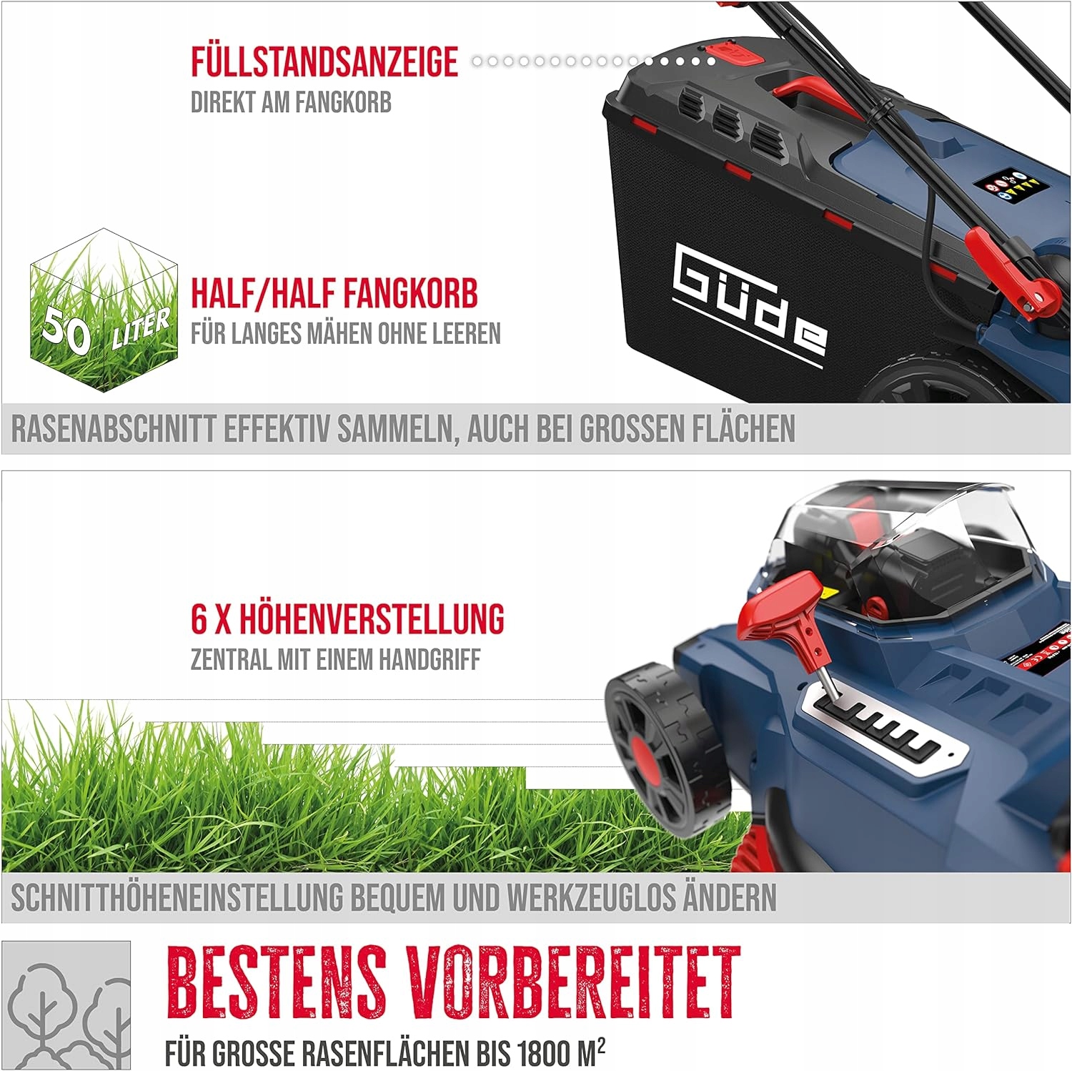 Güde Акумуляторна газонокосарка RM 36-0.43 36 В Easy-Energy-Exchange безщітковий двигун косить/збирає/мульчує ширину різання 430 мм 6- регулювання висоти стрижки 55 л бак для трави