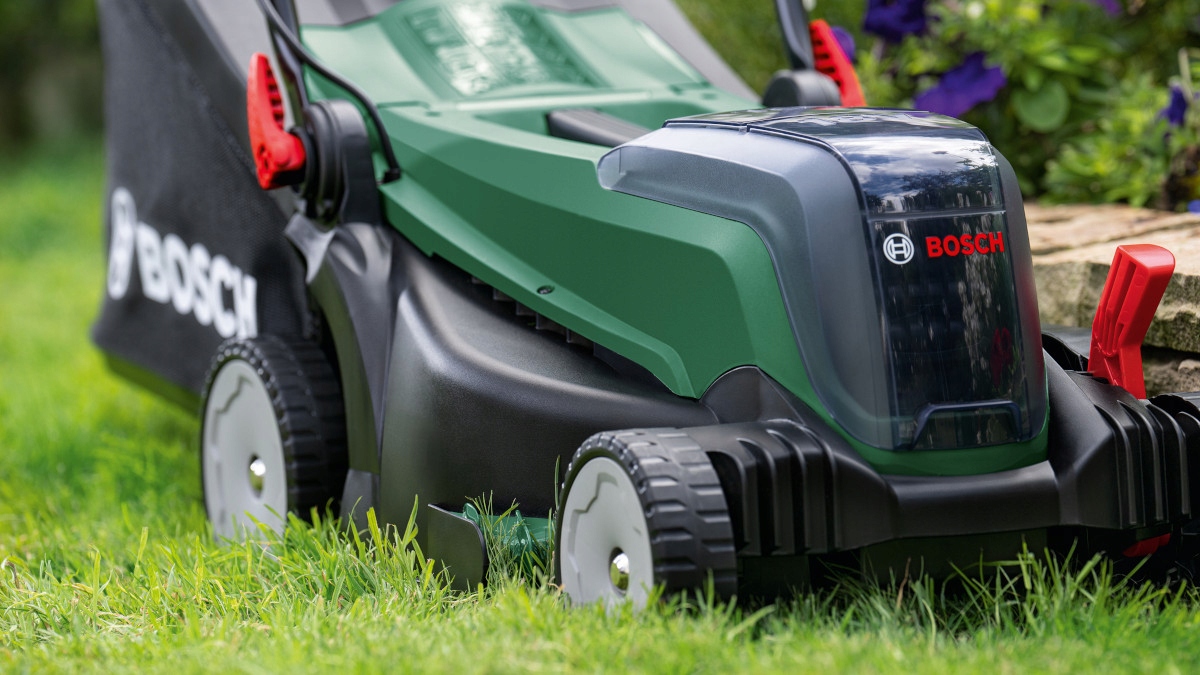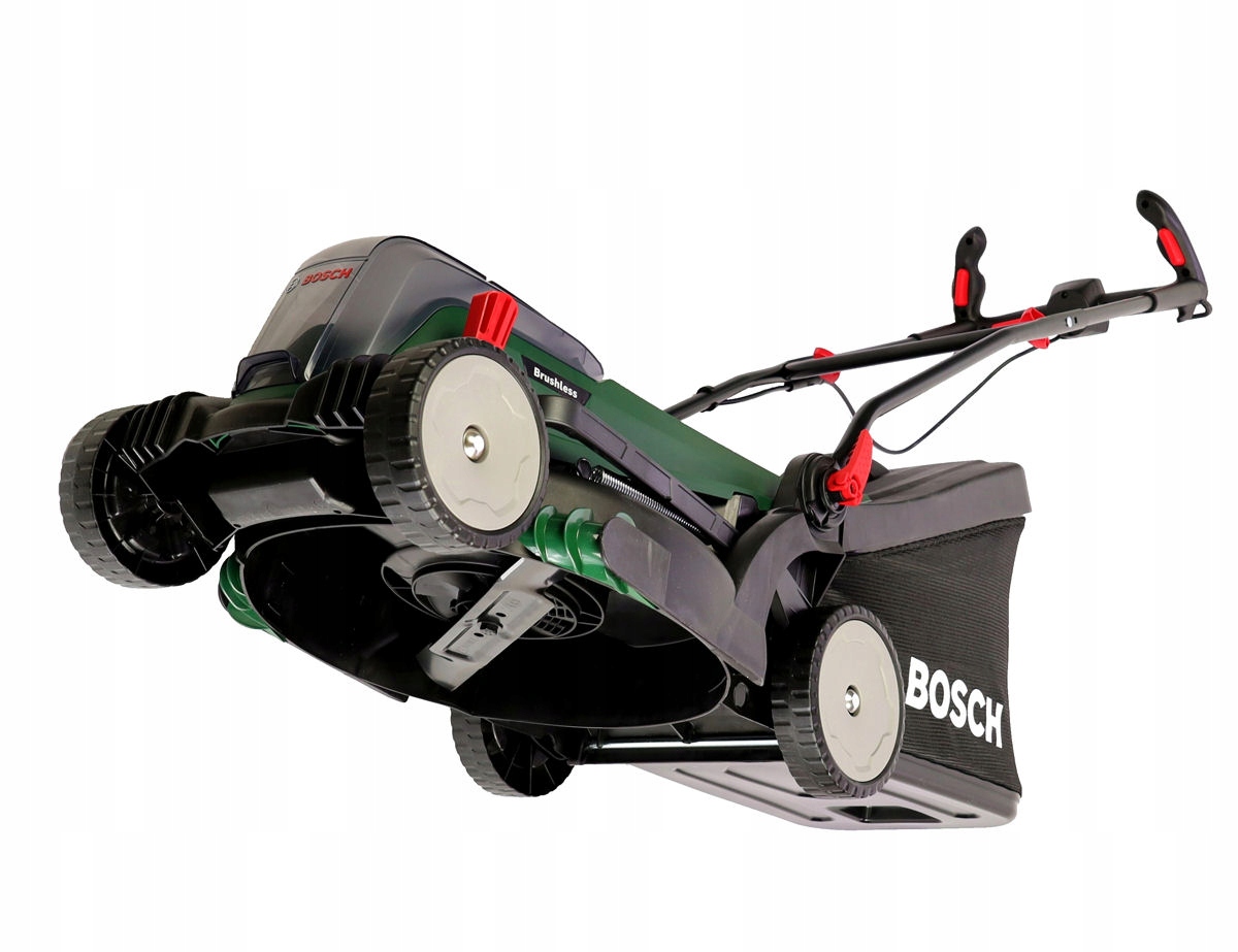 Безщітковий двигун BOSCH, завдяки своїй конструкції, у якій спеціальний клиновий ремінь передає привід від двигуна до ріжучого ножа, що гарантує максимальну потужність косіння навіть при низькій швидкості обертання. Гальмування ножів автоматично збільшує потужність двигуна, що дозволяє зрізати високу (до 30 см) або вологу траву.