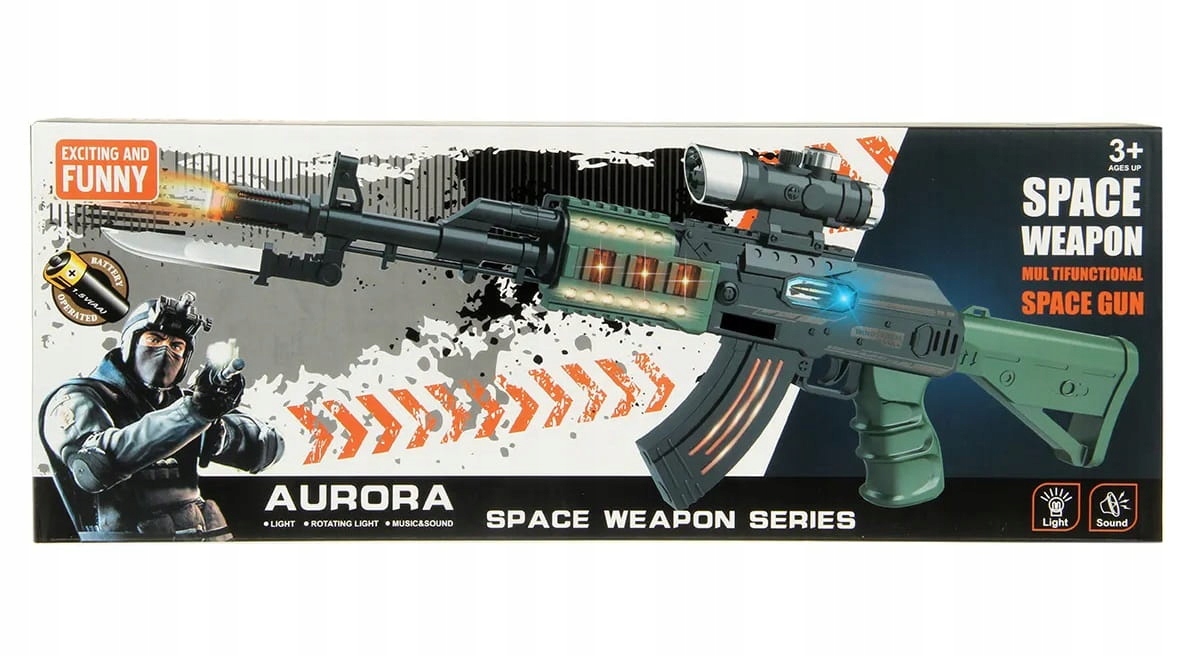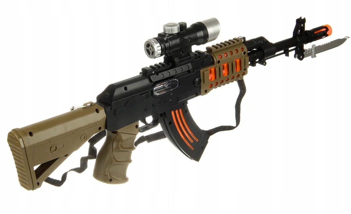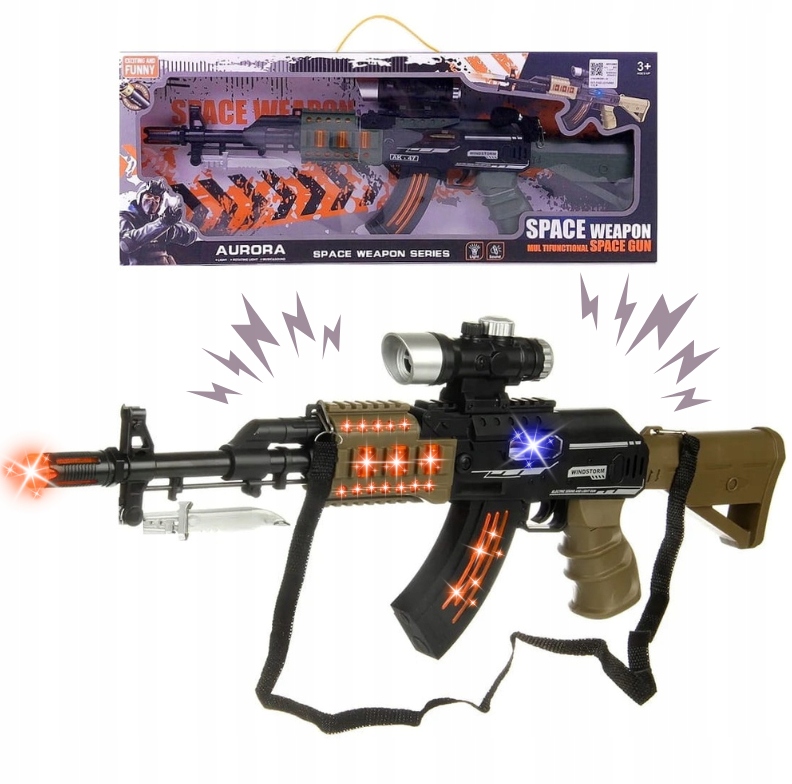 ➡️Гвинтівка підсвічується та видає звуки пострілу під час гри.