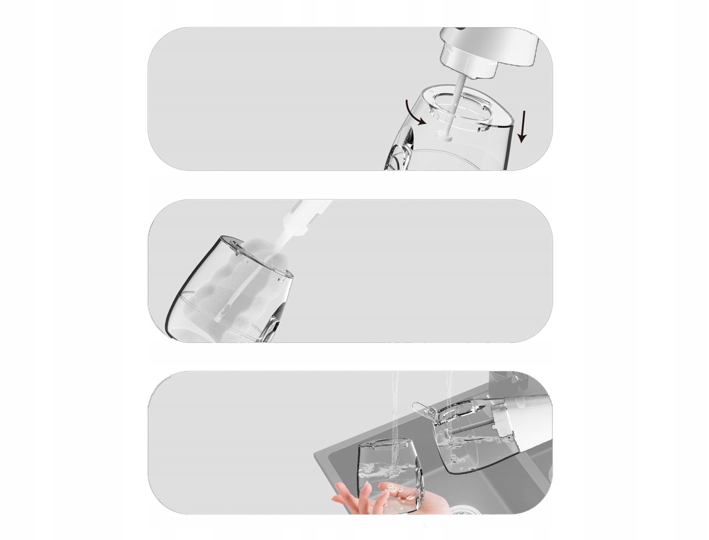 Резервуар для води має ємність 300 мл Це дозволить вам очистити всю ротову порожнину без потреби для доливання рідини в контейнер. Весь резервуар від'єднується від конструкції - ви можете легко очистити його таким чином. Для зручності використання має додатковий менший отвір, який пристосований для доливання води. Завдяки цьому ви заощадите час і вам не доведеться розбирати весь іригатор.