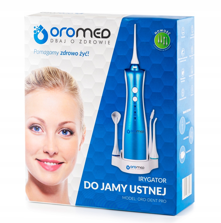 Професійний портативний іригатор OROMED гарантує повну ефективність під час щоденної гігієни порожнини рота. Завдяки високому тиску і концентрації води ми можемо дістатися до найбільш важкодоступних місць між зубами і яснами. Це дозволяє змити залишки їжі та видалити бруд з лінії ясен, міжзубних проміжків і ясенних кишень.