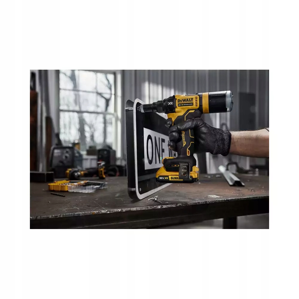Заклепальник Dewalt DCF403 — це портативний акумуляторний інструмент для заклепування, оснащений безщітковим двигуном, який працює від акумулятора 18 В. Це частина лінійки акумуляторних інструментів Dewalt 18V, що означає, що його можна живити від тих самих змінних акумуляторів, які використовуються в десятках інших електроінструментів і садового обладнання Dewalt. Цей заклепувальник має ефективний механізм, який створює силу до 9000 Н, що забезпечує ефективне заклепкове кріплення. За допомогою цього інструменту ви можете виконати до 800 заклепувальних кріплень на одній зарядженій батареї.